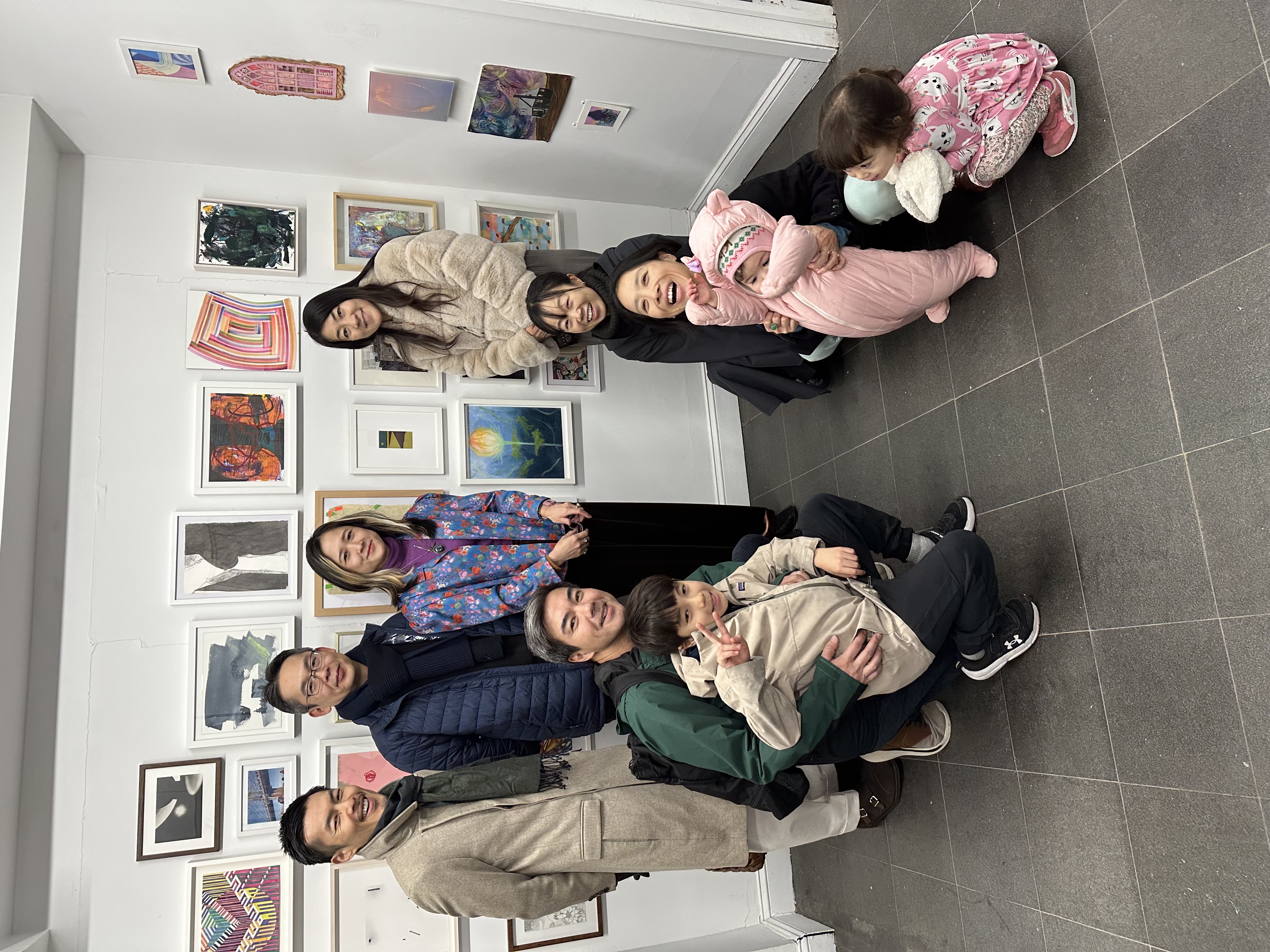 2025年12月21日、NY支部はアート鑑賞会を開催しました。NYでアーティストとして活躍されている外大卒業生の鴨澤誓子さんの活動を応援すべく、鴨澤さんの作品が展示されているブルックリンのギャラリーをNY支部会員とその家族10人で訪問。鴨澤さん本人からの解説を聞きながら作品を鑑賞する贅沢な時間を過ごし、アートな日曜日を堪能しました。鴨澤さんはヒンディー語科卒業後、インドにおける芸術留学を経て現在はNYで芸術活動を展開中という、外大卒業生としては珍しい経歴の持ち主。今回の展示においては絵画「The World and the Guardians」を出展中。この作品は、様々な出来事を乗り越えながら、今生に生きる中で生まれ変わる感覚をテーマにした絵画です。アート鑑賞後はブルックリンのカフェで、子育てやNYのホリデーシーズン談義などで盛り上がり、日曜午後をまったりと楽しみました。