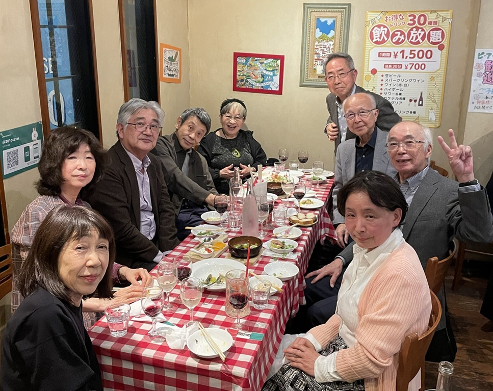 オンライン総会終了後は、本郷3丁目のピアンタ本郷で有志会員のリアルのミニ懇親会を行いました。新年度が始まったタイミングで各種の会合需要があるためか、千客万来の繁盛ぶりでした。懇親会参加者の集合写真も当報告に添付します。